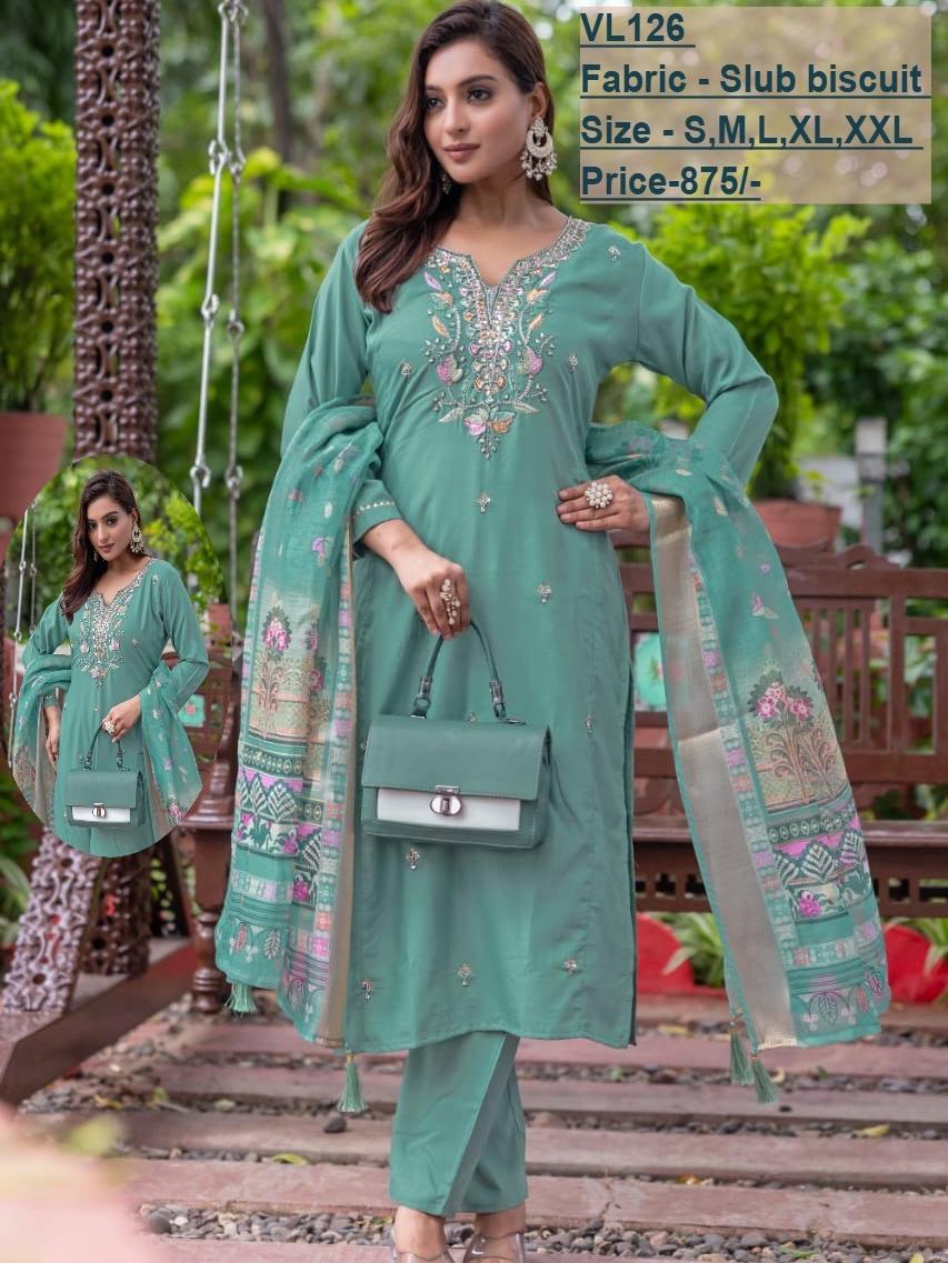 Step into effortless elegance with this beautifully designed sea green kurta set crafted from premium slub biscuit fabric. Featuring delicate embroidery on the neckline and subtle motifs throughout, this outfit blends traditional charm with modern sophistication. The matching dupatta adds a graceful touch with its intricate borders, making it perfect for festive occasions, casual gatherings, or daytime events. Comfortable, stylish, and versatile—this set is a must-have for your wardrobe.