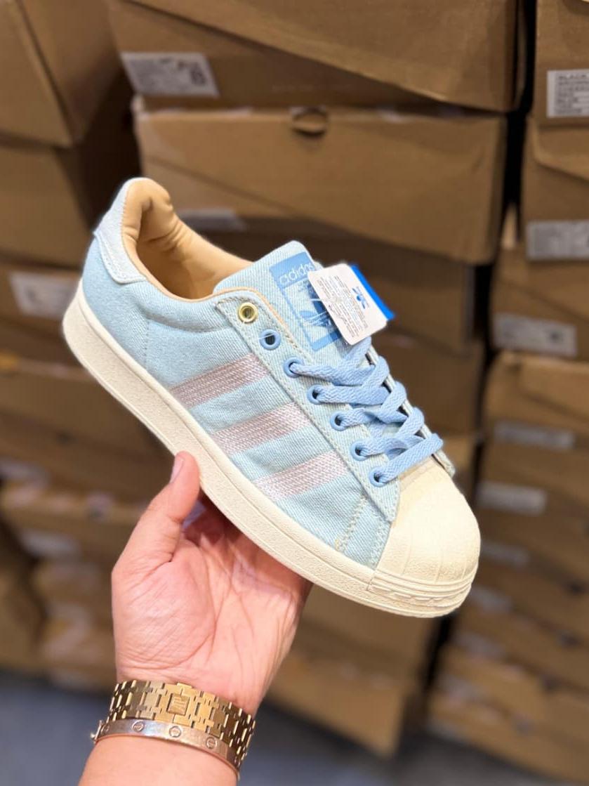 Step up your casual game with these pastel blue sneakers featuring iconic stripe detailing and a clean rubber shell toe. Designed for everyday comfort and timeless style, they bring a fresh, laid-back vibe to any outfit.